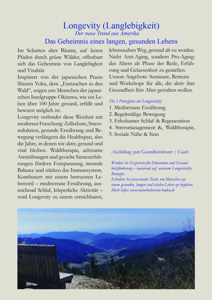 Der Naturheilverein Baden-Baden verbindet moderne Longevity-Forschung, Lebensstilmedizin und Naturerfahrung.